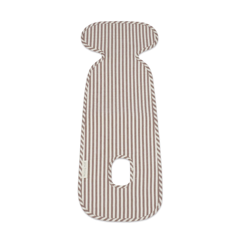 Praliné car seat liner stripes moka, designed to provide comfort, freshness and protection during car journeys. Universal fit, compatible with Group 0/0+ and Group 1 car seats (equivalent to i-Size seats for babies from 40 to 105 cm tall). It adapts easily to most models without interfering with safety systems. Made from a durable cotton and polyester blend, with a breathable layer that helps reduce excessive sweating and keeps baby comfortable. Easy to clean by hand or machine washable at 30 °C. Walking Mum protects your baby by using premium fabrics free from azo dyes and harmful substances. Our Walking Mum collection features a distinctive urban, modern style that stands out, bringing a unique look to every outing. Specifications: Materials: 65% cotton/35% polandester. Dimensions 25×70 cm. x