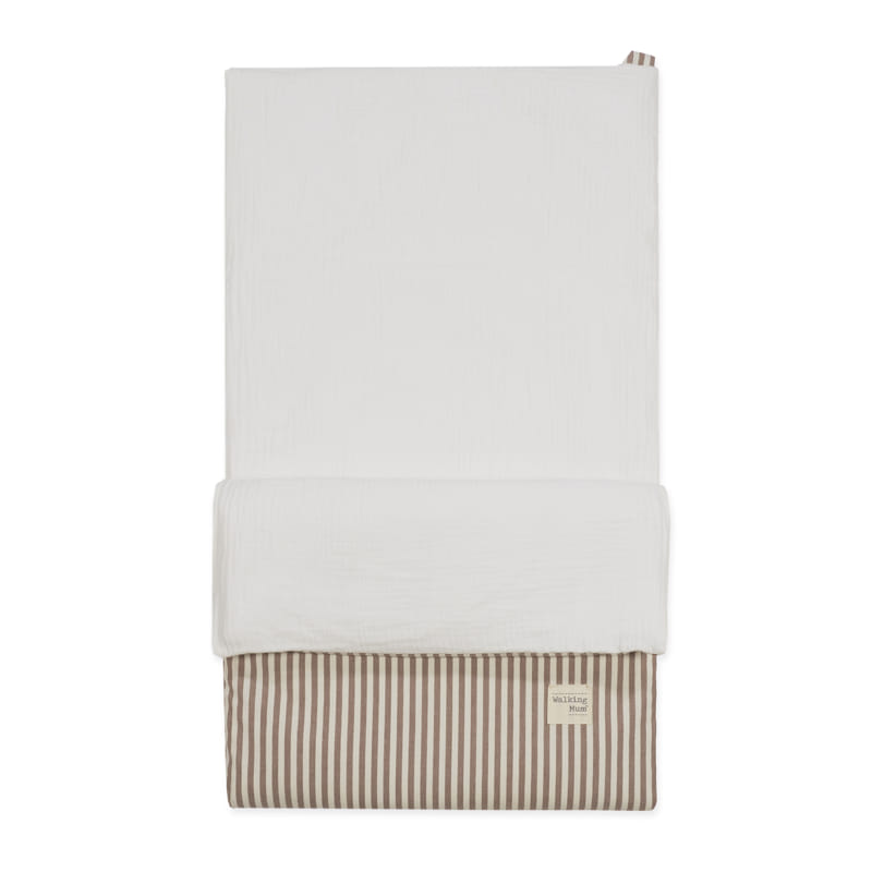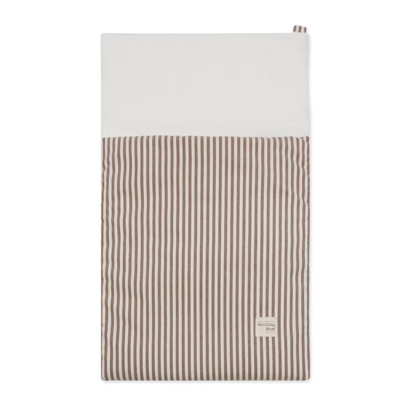 Praliné Stripes Moka summer swaddle sleeping bag TOG 1, designed to wrap your baby in softness and freshness from the very first days. With a durable outer fabric and a plain 100% cotton muslin inner layer, it is lightweight, breathable and especially gentle on baby’s skin. The removable padding lets you easily adapt it to the temperature, making it ideal for warmer months. Perfect for the carrycot, pram or as a light blanket at home. Easy to clean by hand or machine washable at 30 °C. Walking Mum protects your baby by using premium fabrics free from azo dyes and harmful substances. Our Walking Mum collection features a distinctive urban, modern style that stands out, bringing a unique look to every outing. Specifications: Materials: outer 65% cotton/35% polandester – Inner 100% cotton. Dimensions 44×78 cm. TOG 1