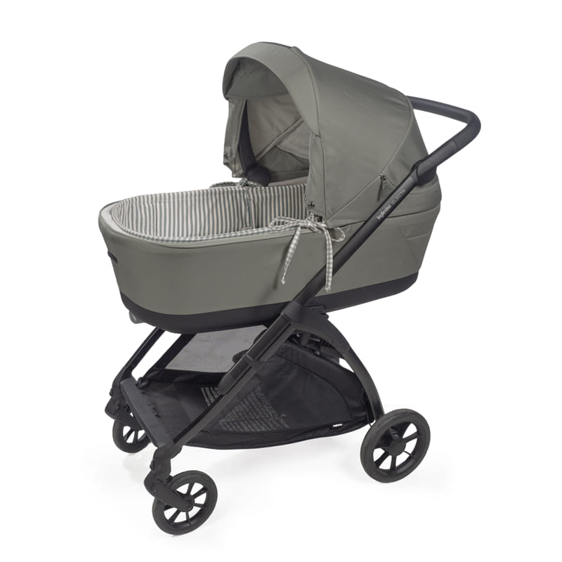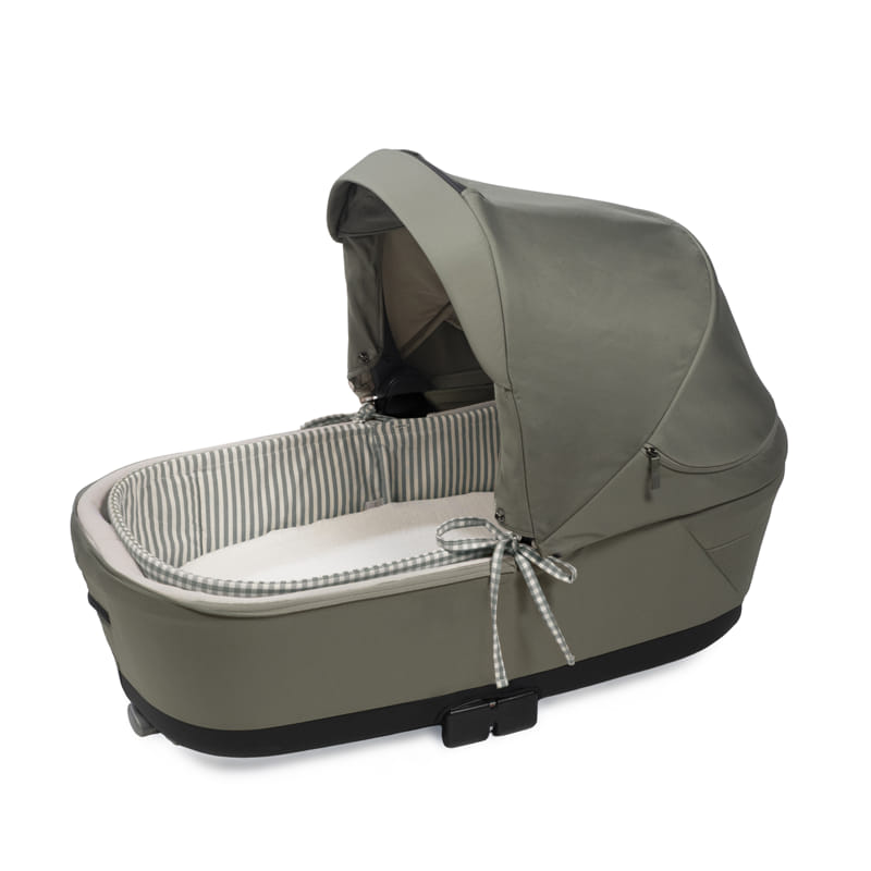 CARRYCOT COVER W/RODS + CARRYCOT FITTED SHEET PRALINÉ VICHY/STRIPS MATCHA