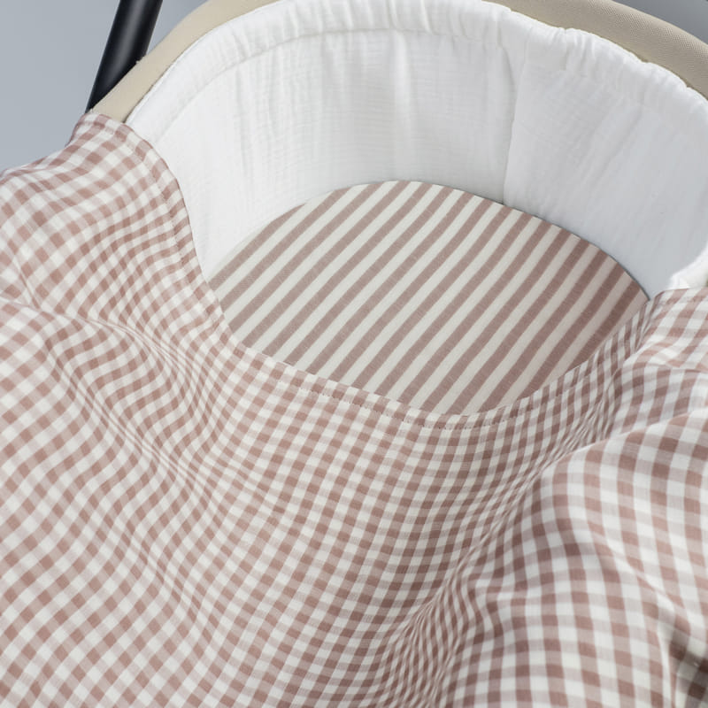 CARRYCOT FITTED SHEET STRIPS + MUSLIN PRALINÉ VICHY MOKA