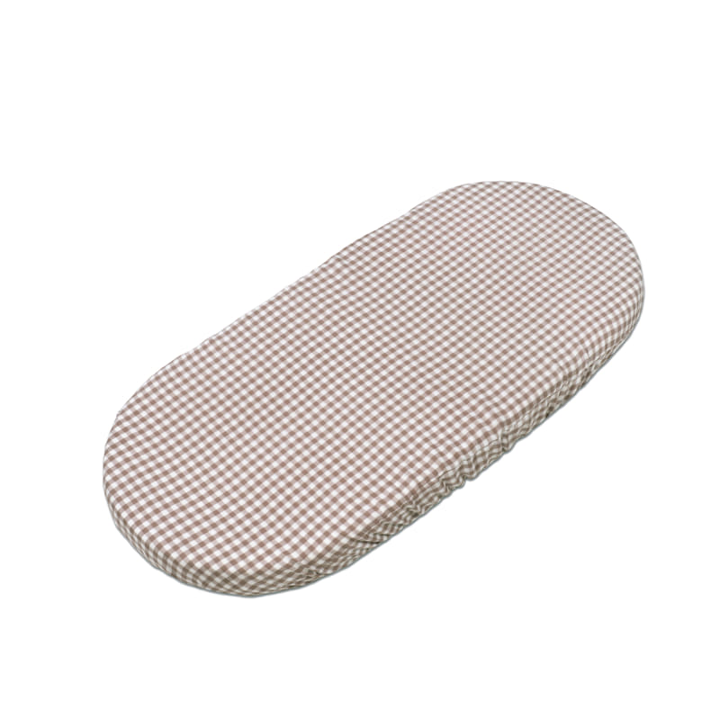 SET/ 2 CARRYCOT FITTED SHEETS PRALINÉ VICHY/STRIPS MOKA