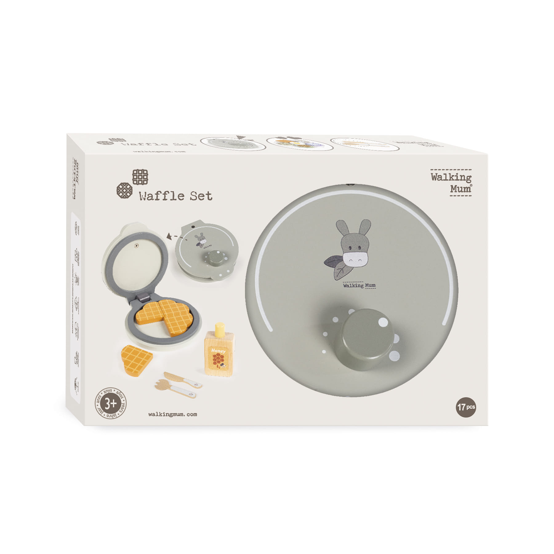 Découvrez le gaufrier en bois de Walking Mum, idéal pour les enfants à partir de 3 ans. Certifié FSC® et conforme à la norme EN71, cet ensemble de 17 pièces encourage le jeu créatif et le développement de l’enfant. Parfait pour les petits chefs du petit-déjeuner ! Préparez les petits-déjeuners les plus sucrés et les plus amusants avec le charmant gaufrier en bois de Walking Mum ! Cet ensemble complet permet aux enfants d’explorer le monde passionnant de la cuisine, en stimulant leur imagination et leurs capacités de jeu de rôle de manière sûre et éducative. Bois durable et sûr : fabriqué à partir de bois de haute qualité, ce gaufrier est certifié FSC® (Forest Stewardship Council), ce qui garantit que les matériaux proviennent de forêts gérées de manière responsable et durable, dans le respect de la planète. Sécurité garantie : Conforme à la norme européenne EN71 relative à la sécurité des jouets, ce produit offre aux parents la tranquillité d’esprit de savoir qu’il s’agit d’un jouet sûr pour leurs enfants. Âge recommandé : Convient aux garçons et aux filles âgés de 3 ans et plus (+3 ans), idéal pour développer la motricité fine, la coordination œil-main et encourager des jeux de rôle plus élaborés. Ensemble complet de 17 pièces : Ce merveilleux ensemble comprend un gaufrier avec des gaufres « découpables », une bouteille de sirop, un plateau avec diverses garnitures (telles que des fruits et des œufs au plat) et des ustensiles tels qu’un couteau et une spatule. Tout le nécessaire pour un petit-déjeuner imaginaire parfait ! Design réaliste et attrayant : avec un design moderne et des couleurs douces, ce gaufrier et ses accessoires sont visuellement attrayants et s’intègrent parfaitement à tout espace de jeu, invitant les enfants à explorer leur créativité. Encourage l’apprentissage et la créativité : grâce au jeu symbolique, les enfants développent leurs compétences sociales, émotionnelles et cognitives tout en découvrant les aliments, la préparation des repas et les tâches ménagères de manière amusante et captivante. Le gaufrier Walking Mum Toy est le cadeau idéal pour inspirer les futurs cuisiniers et les amateurs de petit-déjeuner. Offrez à vos enfants une expérience de jeu sûre, éducative et délicieusement amusante !