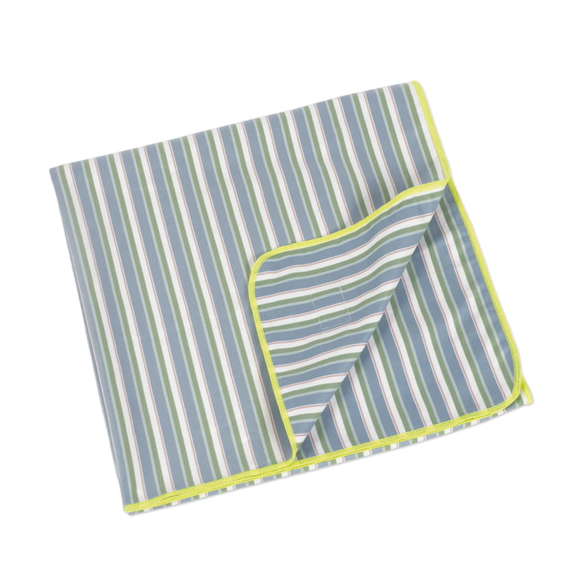 Il telo in microfibra Summer Strisce di Walking Mum è il complemento perfetto per le giornate in spiaggia, in piscina o le gite all’aria aperta. Il suo design a righe dona freschezza e si abbina al resto della collezione, creando un look estivo coordinato. Realizzato in microfibra (88% poliestere / 12% poliammide), è leggero, morbido e ad asciugatura rapida, ideale per l’uso quotidiano con neonati e bambini piccoli. Il suo tessuto compatto lo rende facile da piegare e occupa pochissimo spazio nella borsa da spiaggia o nel passeggino. Include una pratica e comoda borsa in poliestere per il trasporto, per tenerlo sempre protetto e pronto all’uso. Perfetto per accompagnare ogni tuffo e asciugare abbracci pieni di sabbia e sale. Con protezione solare FPS/SPF 50+. Conforme alla norma UPF EN 13758-1:2002+A1:2007 sulle proprietà protettive contro le radiazioni solari ultraviolette nei tessuti per abbigliamento. Misure: 70×140 cm.