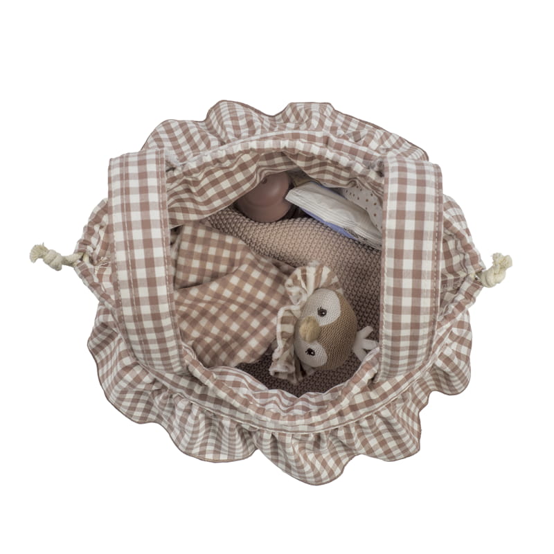 La borsa bucket Praliné Vichy Moka è l’accessorio perfetto per accompagnare ogni uscita con stile e funzionalità. La sua delicata fantasia vichy nella tonalità moka dona un’aria fresca, naturale e senza tempo, ideale da abbinare a qualsiasi passeggino. Grazie al pratico formato a secchiello è perfetta per avere sempre a portata di mano l’essenziale del bambino: pannolini, mussole, biberon o piccoli accessori. Realizzata con trattamento idrorepellente, è facile da pulire a mano o in lavatrice a 30 °C, pensata per l’uso quotidiano. Include manici per appenderla facilmente al passeggino, mantenendo il perfetto equilibrio tra comfort e design. Un modello versatile, leggero e dal fascino sereno che definisce la collezione Praliné. Walking Mum protegge il tuo bambino utilizzando tessuti di alta qualità, privi di coloranti azoici e sostanze nocive. La collezione Walking Mum si distingue per uno stile urbano e moderno che non passa inosservato. Le borse maternità di questa linea sono sportive e pratiche, pensate per mamme e papà moderni che apprezzano design attuali e di tendenza senza rinunciare a qualità e funzionalità. Specifiche: Materiali: 65% cotone/35% poliestere con trattamento idrorepellente. Dimensioni: 25 x 28 x 20cm.