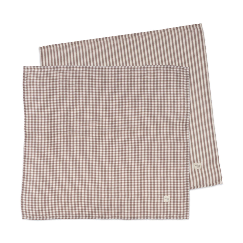SET/ 2 MUSSOLE 70X70 CM PRALINÉ VICHY/STRISCE MOKA