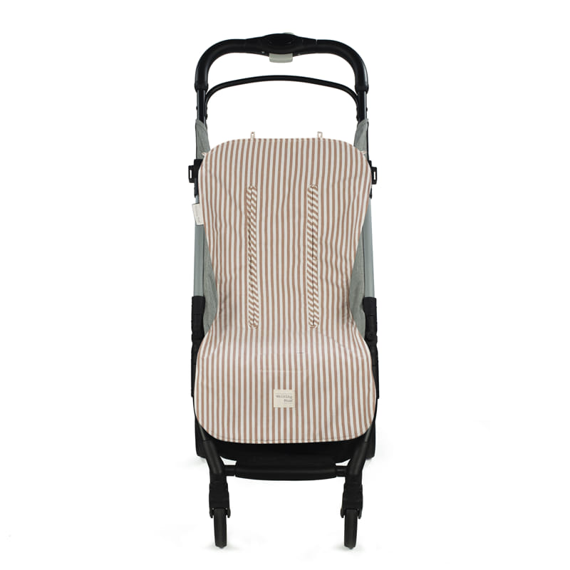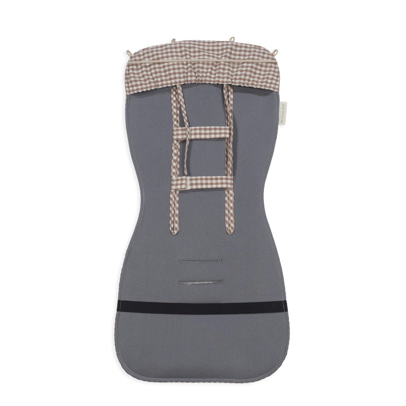 La colchoneta para silla de paseo Praliné Vichy Moka es el forro ideal para cubrir el asiento de tu bebé durante el verano, protegiendo su piel de las rozaduras e irritaciones del calor y además mantienes el tapizado original como nuevo. Está elaborada con un material transpirable que ayuda a prevenir la sudoración excesiva del bebé y protege la sillita haciendo el paseo más confortable. Su esquema de uso universal te permite adaptar el colchón a la mayoría de las sillas de paseo, y dispone de varias aperturas (ojales) y ajustes con los que puedes colocarla de forma muy fácil en el asiento del coche. Gran calidad y mucho estilo. Fabricado en materiales resistentes y de fácil limpieza a mano o a máquina a 30 °C. Walking Mum protege a tu bebé utilizando los mejores tejidos, libres de colorantes azoicos y sustancias nocivas para la salud. Nuestra colección Walking Mum está diseñada con un particular sello de estilo urbano y moderno que no pasa desapercibido, para vestir diferente los paseos con tu bebé. Los accesorios de maternidad de esta línea son más sport y prácticos, especialmente pensados en mamás y papás modernos que aprecian los diseños más actuales y en tendencia sin dejar de lado la calidad y la funcionalidad de los productos que complementan y hacen más cómodos todos los paseos con sus bebés. Especificaciones: Materiales: exterior 65% algodón/35% poliéster. Medidas: 37×82 cm Universal.