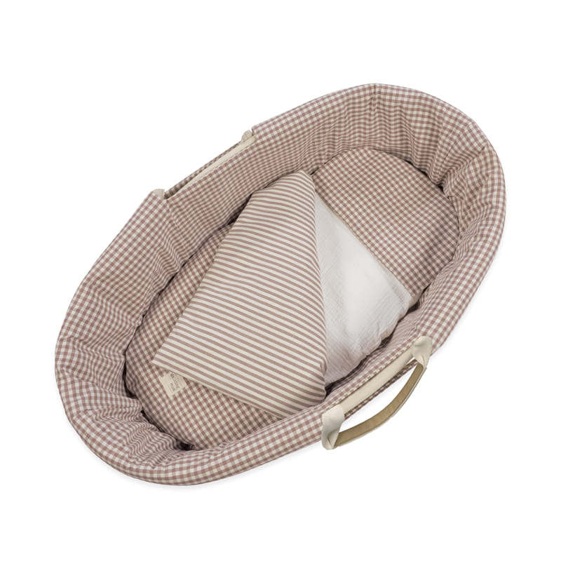 Prepara el primer nidito de tu bebé con este adorable y completo set de vestidura y descanso para moisés de la colección Praliné Vichy/Rayas Moka de Walking Mum, diseñado específicamente para moisés de 80×40 cm. Pensado para ofrecer el máximo confort y un toque de elegancia a la cuna de tu recién nacido, este conjunto es ideal para arropar a tu bebé con suavidad y seguridad desde el primer día. Este completo conjunto para el descanso de tu bebé se compone de cinco piezas fundamentales: Funda para el moisés reversible, viste el moisés aportando un tacto suave y un diseño encantador que transformará su aspecto. Sábana bajera ajustable elaborada en suave muselina 100% algodón, garantiza un ajuste perfecto al colchón del moisés y una transpirabilidad superior para evitar el calor. Funda nórdica también reversible, añade un toque de color y estilo a la cunita. Relleno ligero y cálido, este edredón proporciona la temperatura ideal para que tu bebé duerma plácidamente, desenfundable, TOG 2.5. Almohada en rejilla 3d transpirable para un mayor confort. Es la elección ideal para padres que buscan calidad, confort y un estilo inconfundible en los accesorios de moisés de sus bebés. Fácil de lavar a mano o a máquina a 30 °C. Combínalo con otros productos de la colección para un conjunto completo. Walking Mum apuesta por productos funcionales, seguros y con mucho estilo, pensados para las familias modernas que cuidan cada detalle. Walking Mum protege a tu bebé utilizando los mejores tejidos, libres de colorantes azoicos y sustancias nocivas para la salud. Nuestra colección Walking Mum está diseñada con un particular sello de estilo urbano y moderno que no pasa desapercibido, para vestir diferente los paseos con tu bebé. Los accesorios de maternidad de esta línea son más sport y prácticos, especialmente pensados en mamás y papás modernos que aprecian los diseños más actuales y en tendencia sin dejar de lado la calidad y la funcionalidad de los productos. Especificaciones: Materiales: Sábana 100% Algodón, Funda y almohada 65% algodón/35% poliéster. Cumple Normativa EN-16779 Artículos textiles de puericultura. Requisitos de seguridad y métodos de ensayo para los edredones de cuna infantiles.
